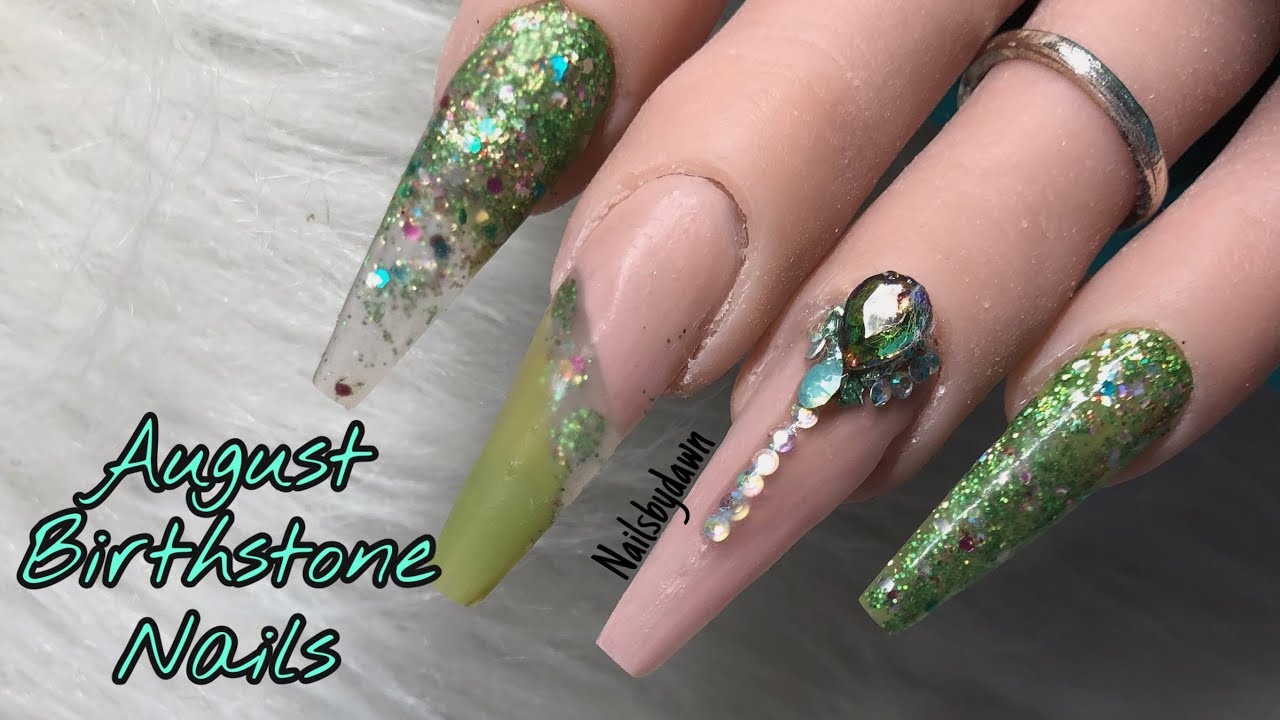 August Birthstone Nails Acrylic Nails YouTube