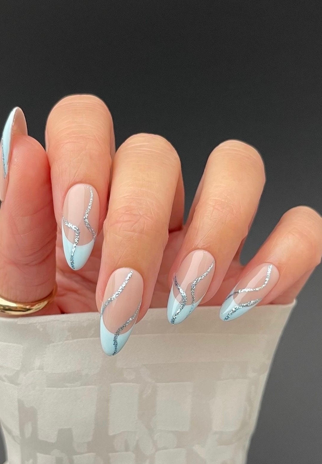 Baby Blue Tip Nails Silver Swirl Fake Nails Press On Nails Glue On Nails Etsy