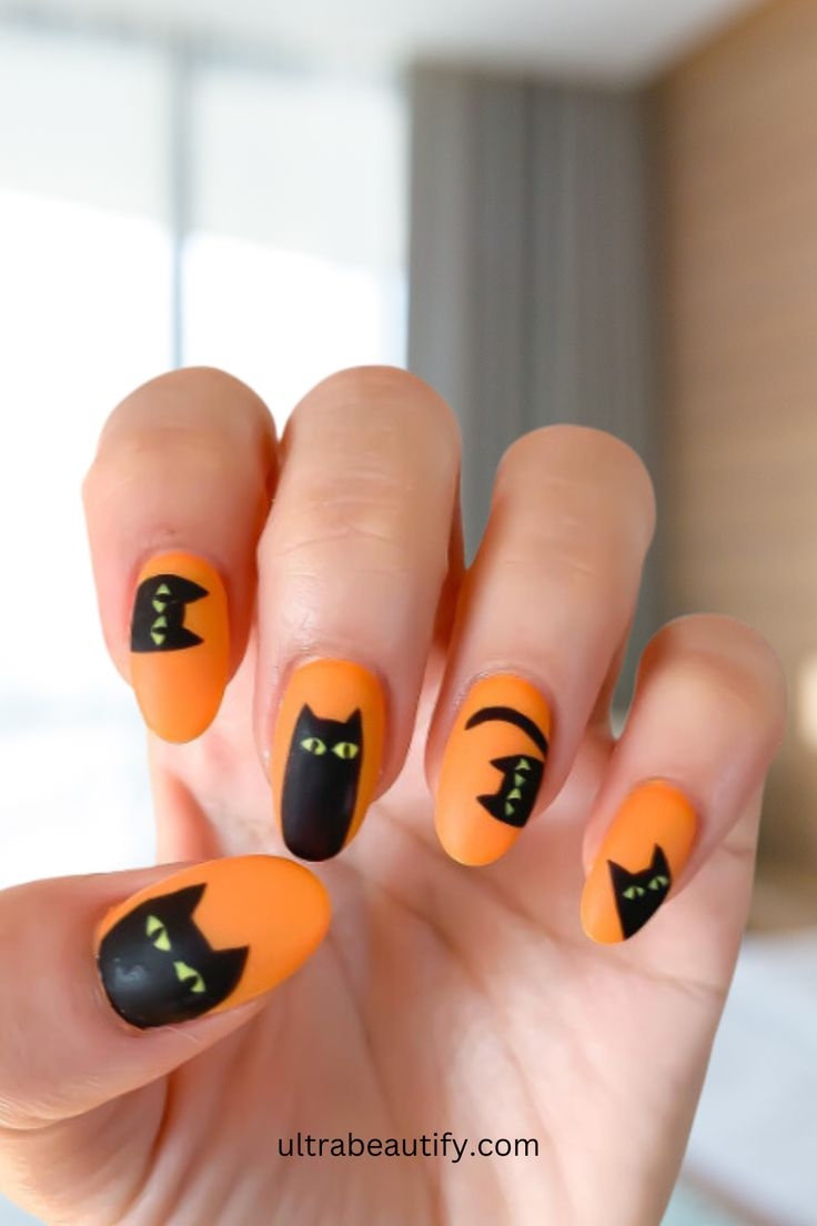 Black Cat Silhouette Nail Art
