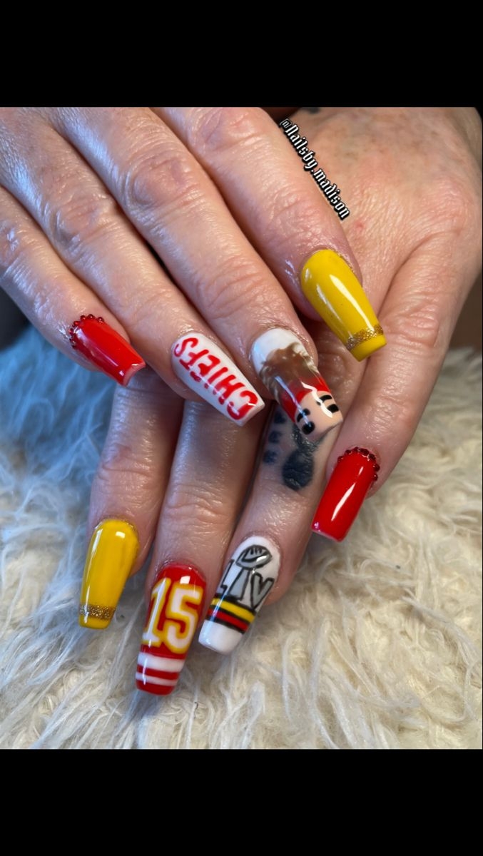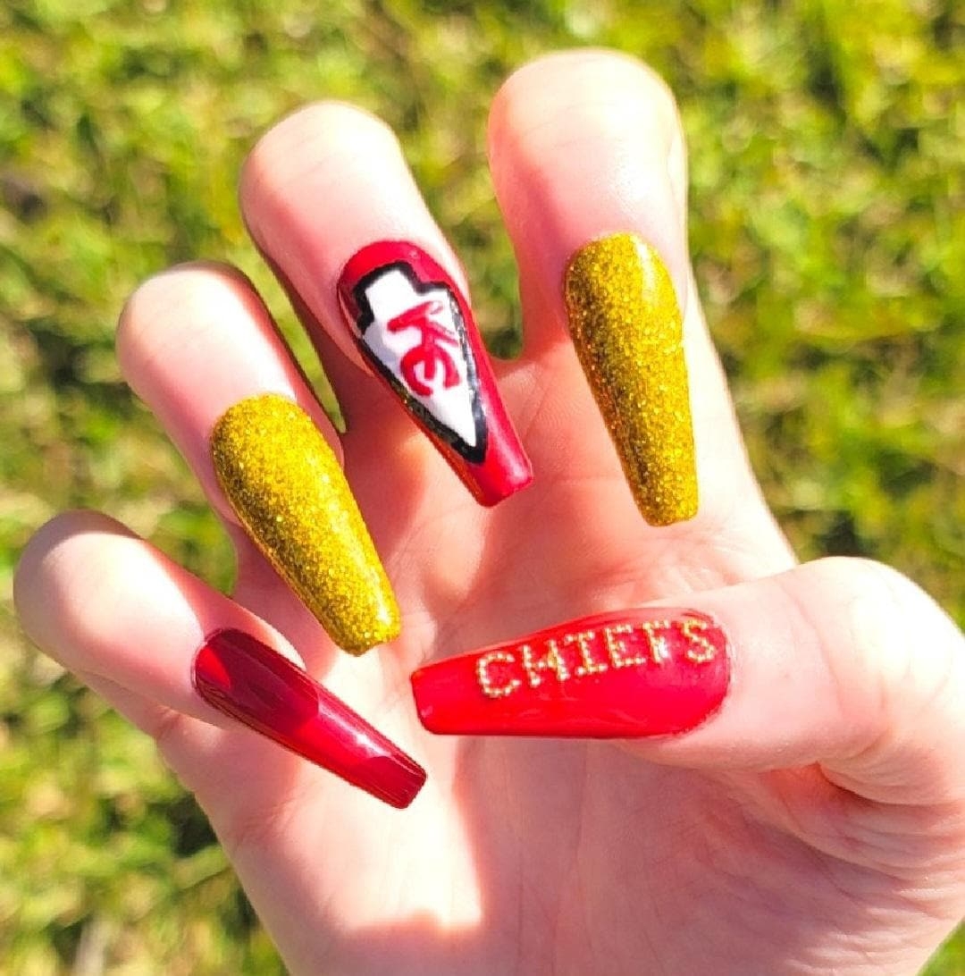So, why wait? Grab your favorite red and gold nail polishes, some nail art tools, and get creative with your fingernail KC Chiefs nail designs today. Show your team spirit in a unique and stylish way that will have everyone cheering for the Chiefs!