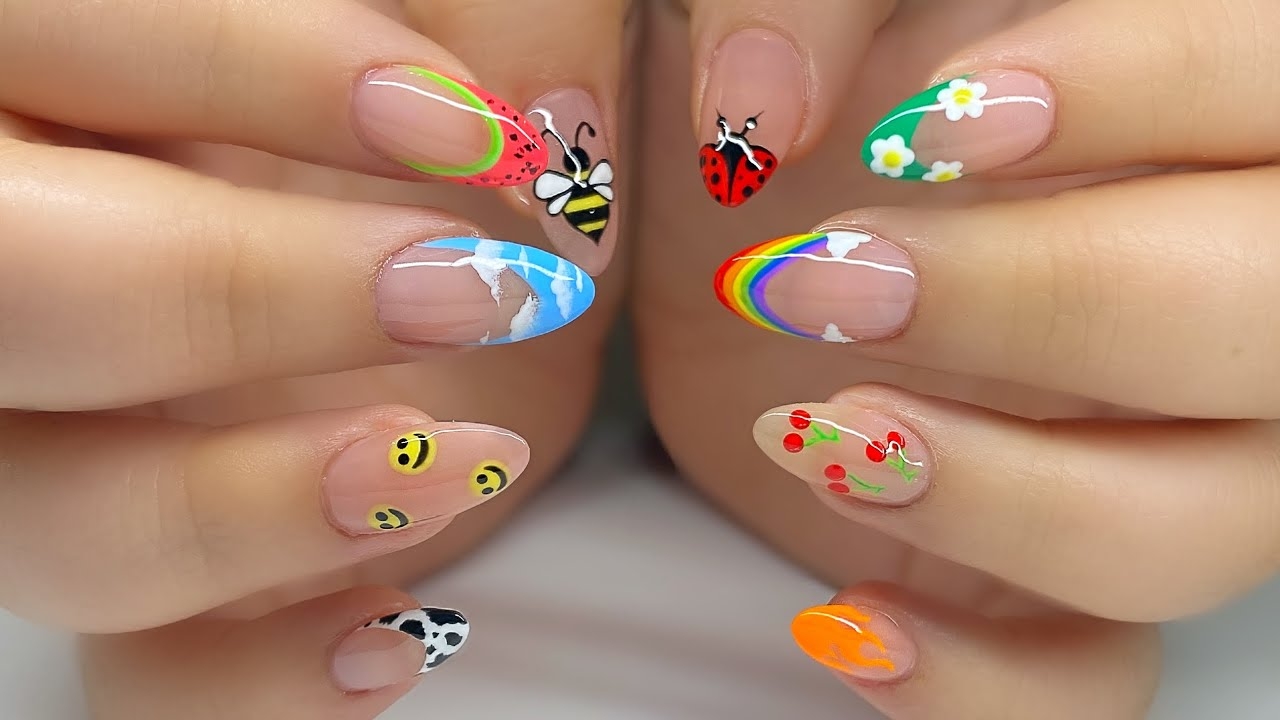 Gel X Nails 10 Different Fun Summer 2021 Nail Art Ideas Rainbow Cow Cloud Flame Nail Tutorial YouTube