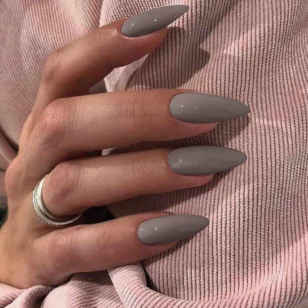 Amazon Gray Press On Nails Medium Stiletto Almond KQueenest Pure Color Acrylic Nails Kit Reusable Fake Nails With Feature Protective UV Coating For Women Nail Art Manicure In 24PCS Beauty Personal