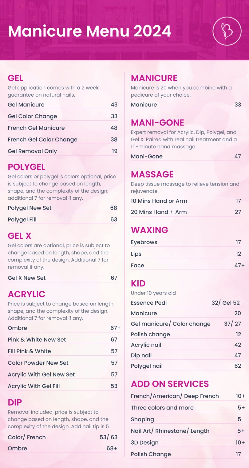 Menu Prices Nail Me Right Nail Salon