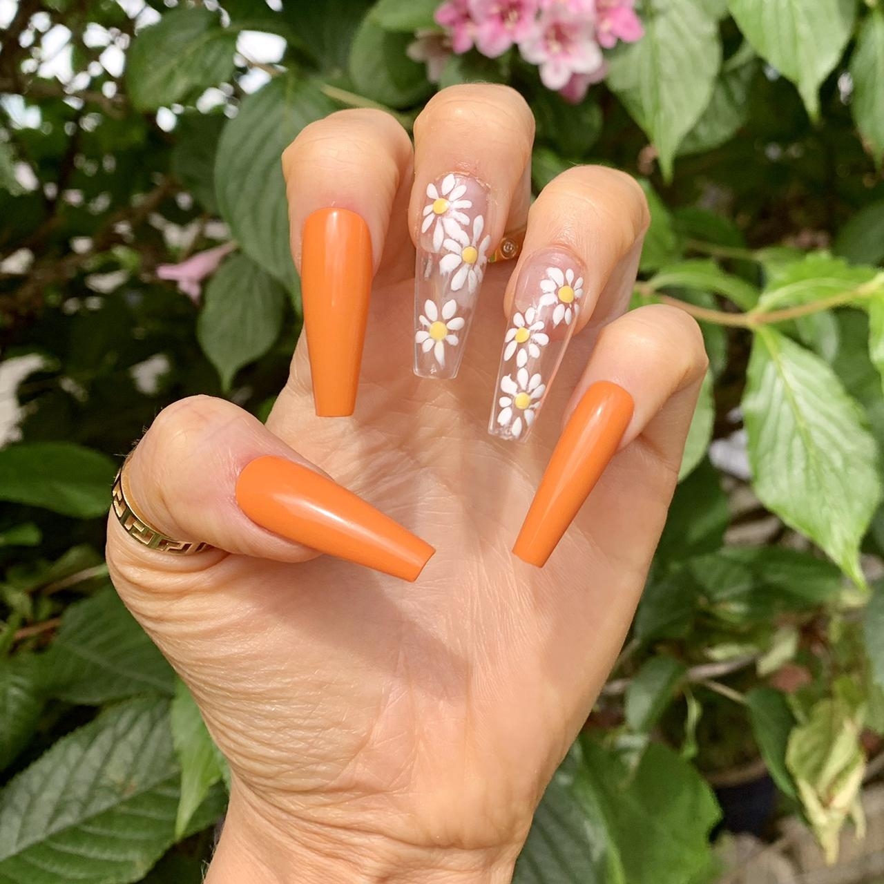 ORANGE DAISY NAILS SET OF 10 I Can Do Two Depop