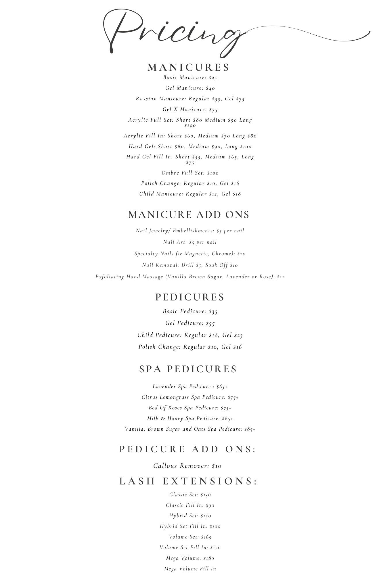 Pricing Prive Nail Bar