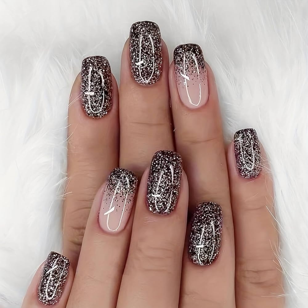 Amazon 24 Pcs Glitter Press On Nails Short Square Fake Nails Designs Pink Glossy Full Cover False Nails Sparkly Reusable Fully Cover Acrylic Nails Stick On Nails For Women Nails Manicure Decoration