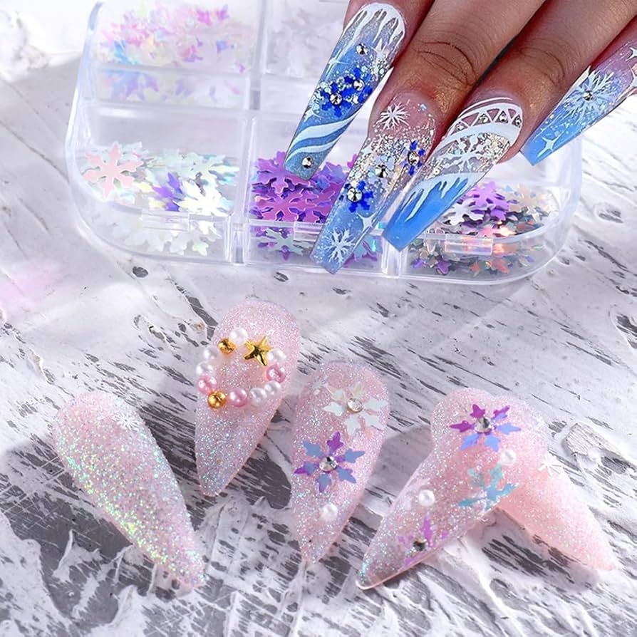 Amazon Snowflake Nail Art Glitter Sequins Christmas Snowflakes Holographic Nail Art Flakes Holographic Nail Designs For Women Girls DIY Acrylic Nails Decoration Charms 6 Grids Beauty Personal Care