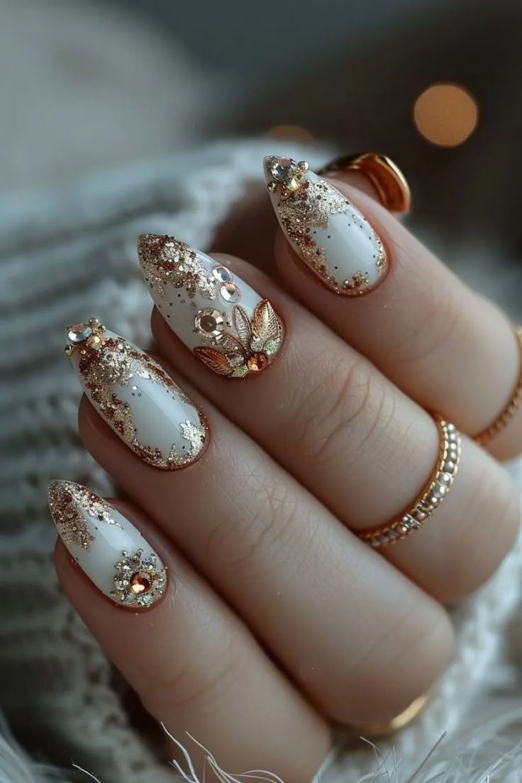 White And Gold Nails Elegant Autumn Nail Art YouTube