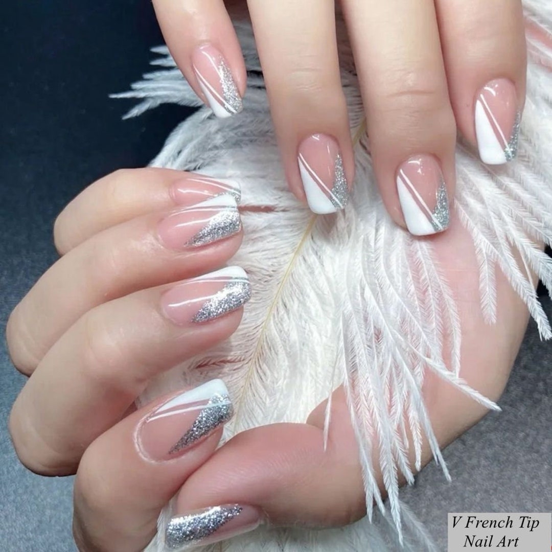 Glitter Silver French Nail Art Stickers White Square French Tips V Shaped French Nail Self Adhesive Nail Art Decals Sticker Csseries Etsy